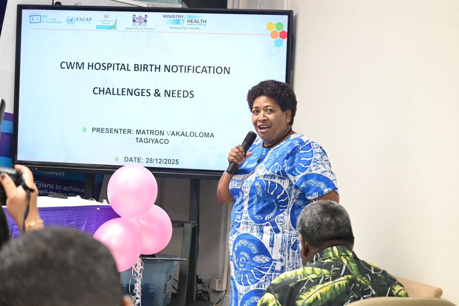 The on-site service at CWM Hospital is part of broader reforms under the CRVS Committee, supported by the Ministry of Health and Medical Services, the Fiji Bureau of Statistics, ESCAP, SPC, Bloomberg Philanthropies, and other partners.